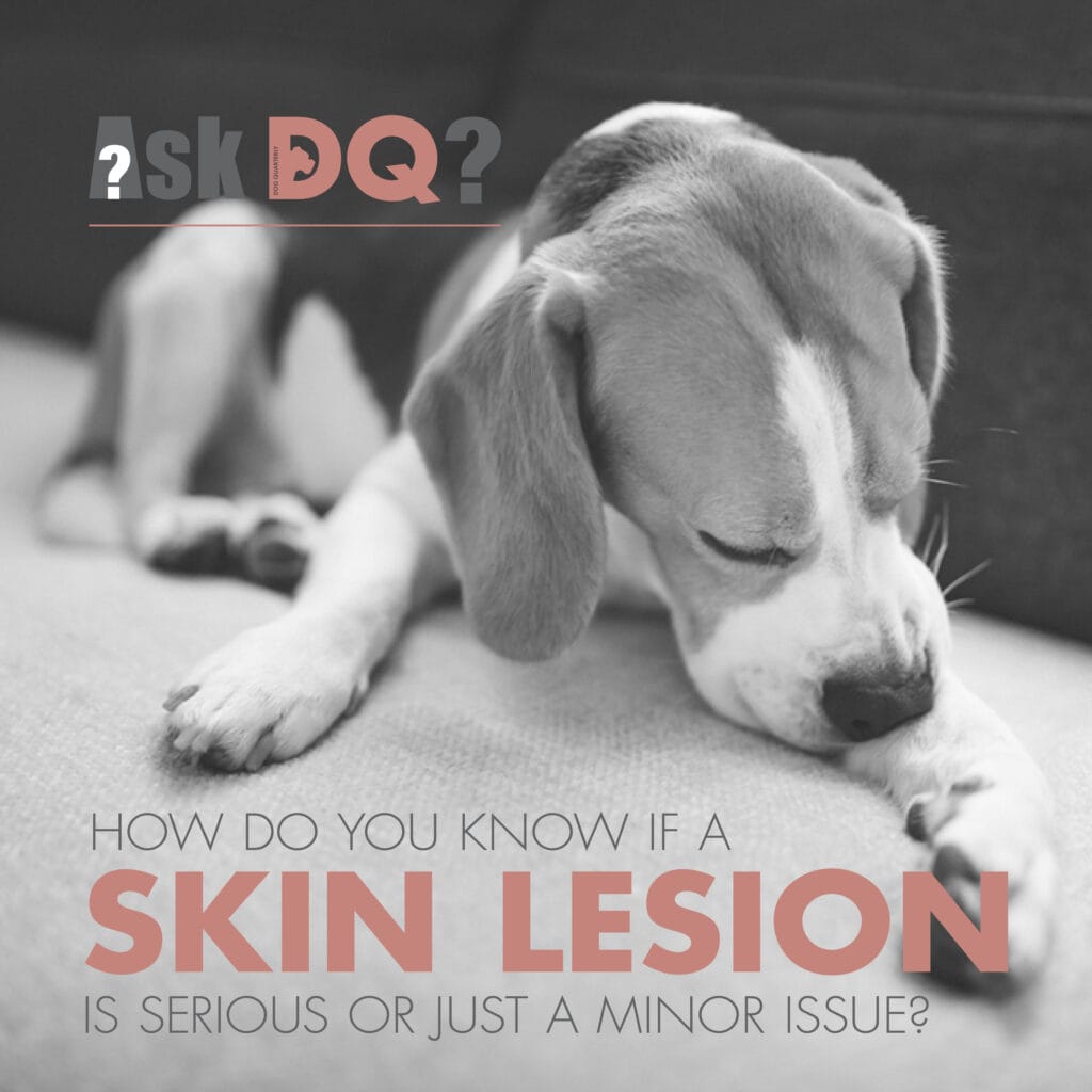 A: It’s not always easy to tell, which is why we advise dog owners to watch for certain red flags. If the lesion is painful, growing, bleeding, or not healing within a few days, or if your dog is obsessively licking or scratching the area, it needs to be seen. Also, if your dog has more than one lesion or shows other signs like lethargy or fever, don’t delay the visit to your vet.