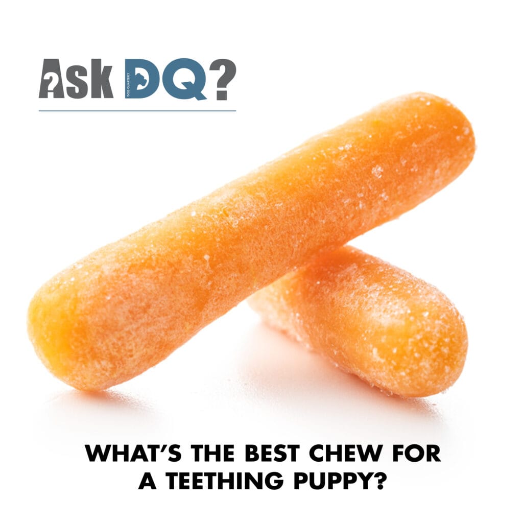 A: Teething pups need soft but durable chews. Try frozen carrots, rolled-up wet cloths frozen overnight, or soft puppy-safe rubber toys. Avoid cooked bones or hard chews that could crack teeth. Chewing helps relieve gum discomfort, and can give your furniture and new slippers a bit of a break!
