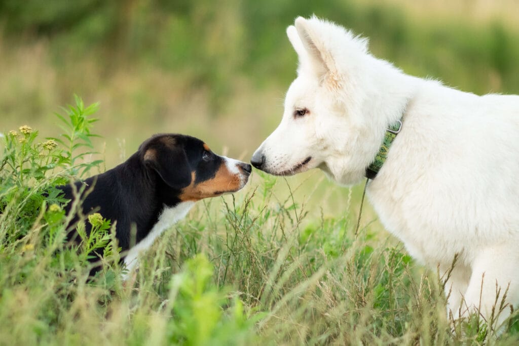 Introduce dogs to new dogs one at a time in a controlled environment. Allow them to sniff and observe each other before allowing closer interaction. Ideally, you don’t want to do these interactions on either dog’s home territory; it is best to choose somewhere neutral to begin with.
