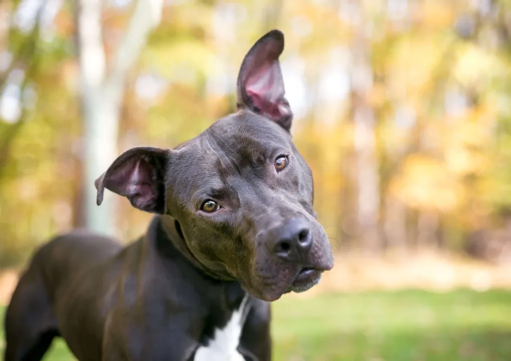 A happy and relaxed dog tends to take on a loose posture, with their weight distributed evenly across all four paws. Everything about them is relaxed, from their tail to their tongue. They might bounce, jump or bow if they want to play, and their eyes will look soft and interested.