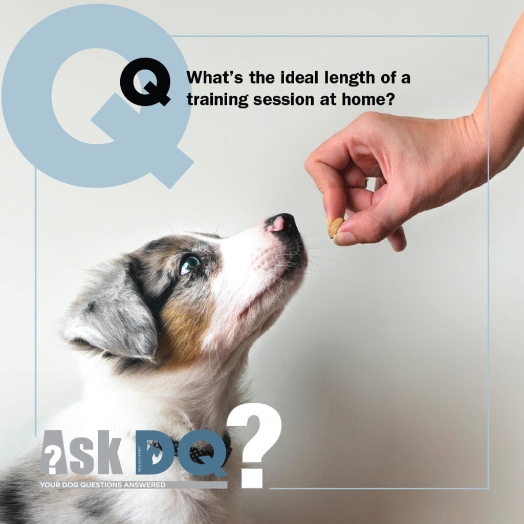 Q: What’s the ideal length of a training session at home? A: Effectively training your dog at home involves short