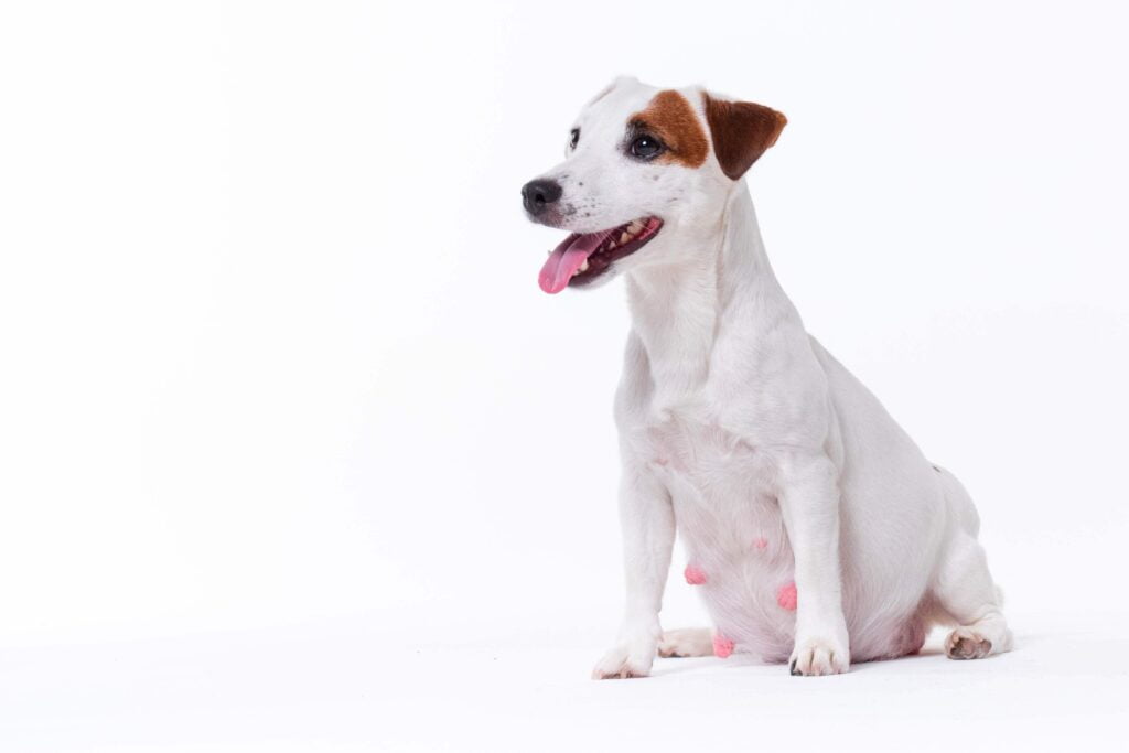 - Weight gain: Some dogs might gain weight or develop a rounder abdomen, resembling a pregnant dog.